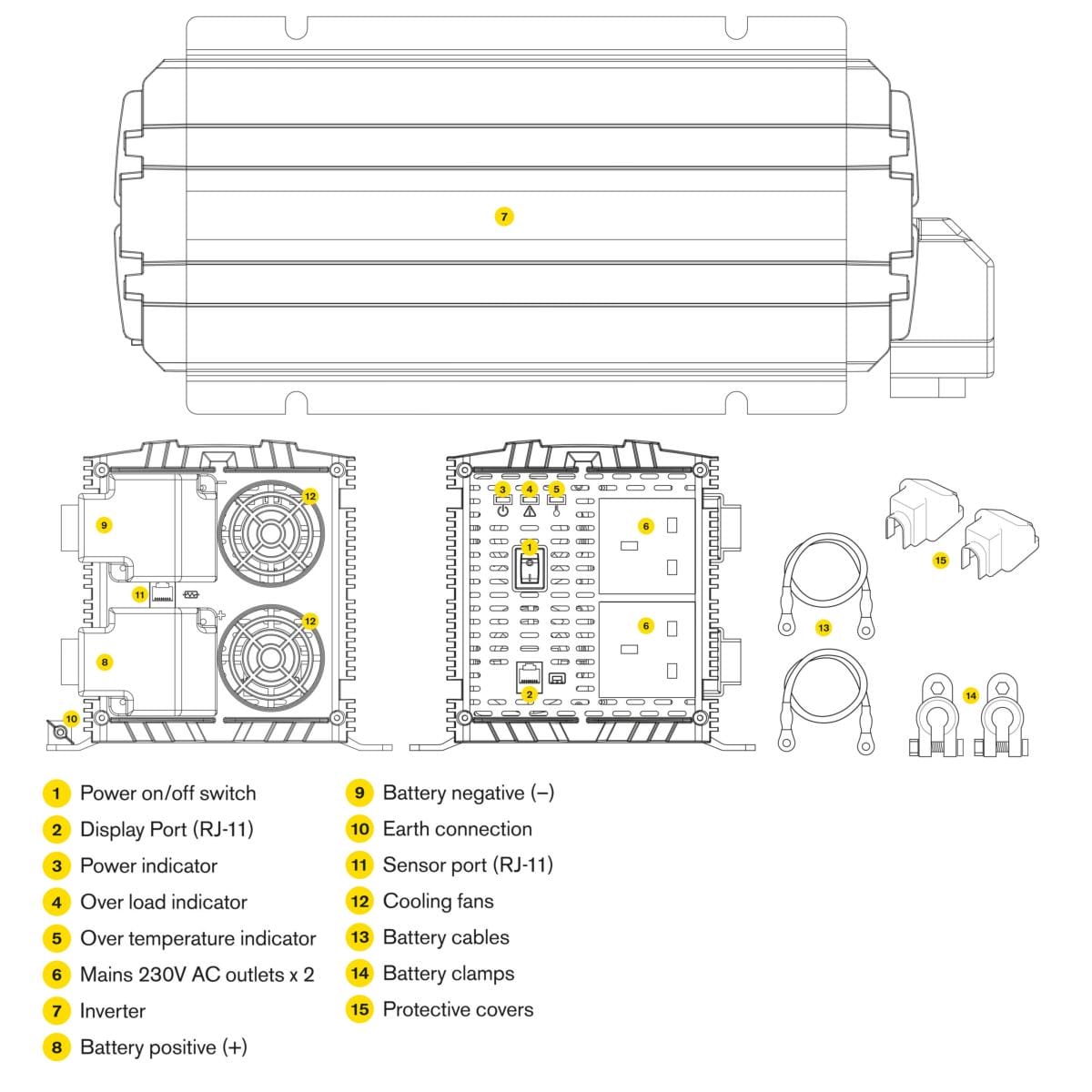 Highly efficient, running at 89% efficiency at 75% load, and with minimal footprint to reduce installation space. Fully protected against overload, over temperature and low/high voltages. Additional LCD screen is also available, to provide power consumption information – essential for effective power management when working remotely. Also available is the RINVCM Current Sensor, which monitors the inverter’s battery current, allowing indication of time remaining before battery is flat to help improve power management.