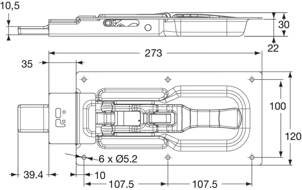 Recessed locking gear, zinc plated steel.