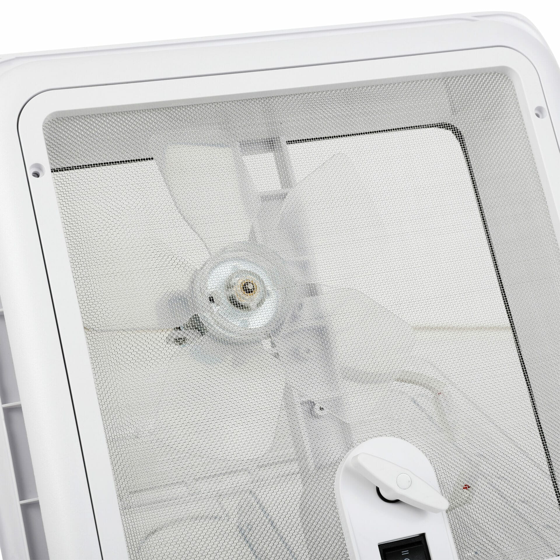 280 x 280mm fan roof hatch in white – perfect for the toilet area.